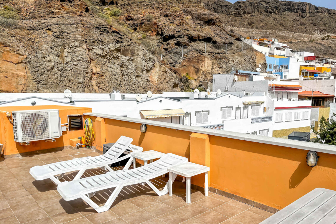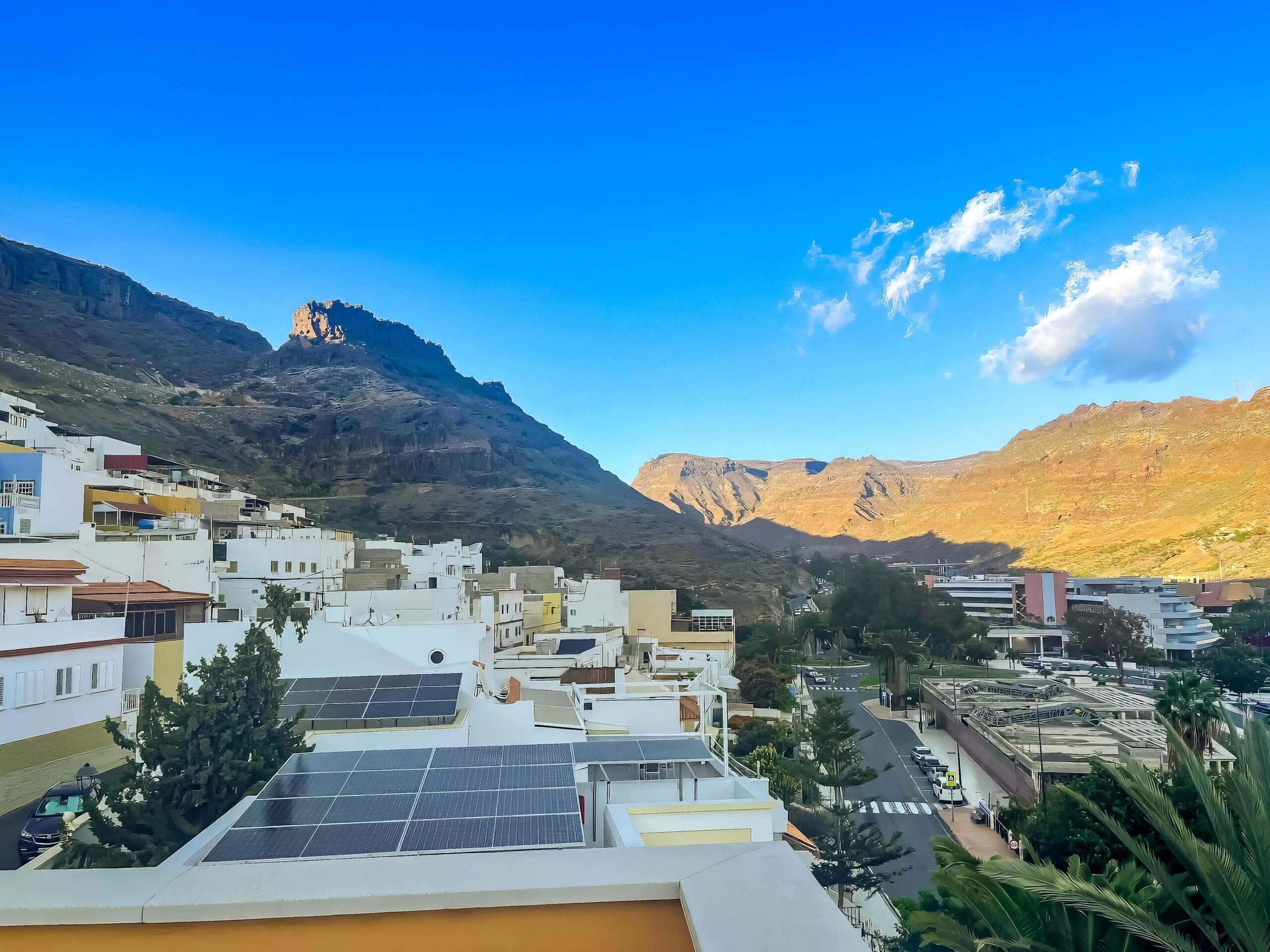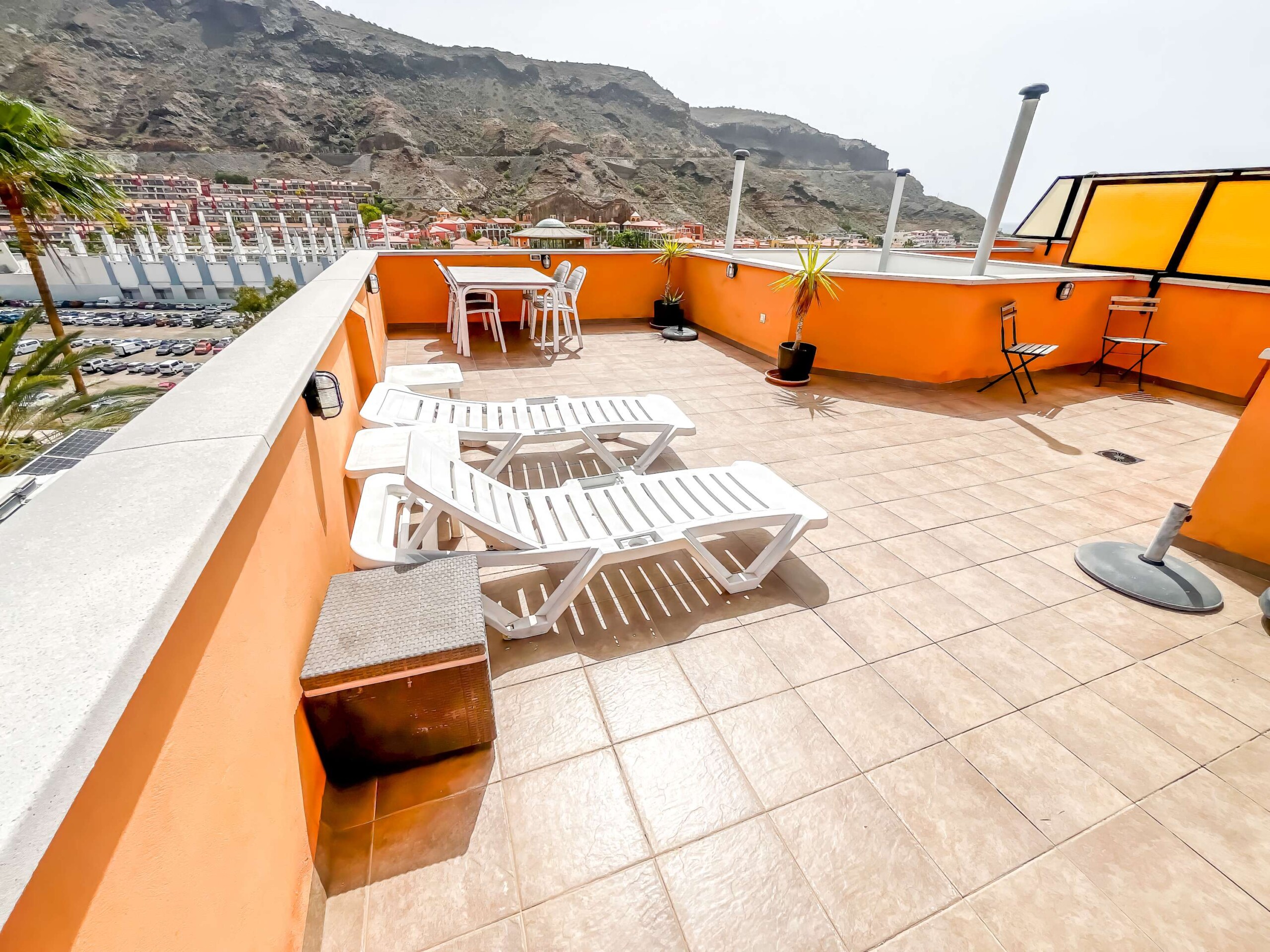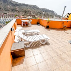 The apartment is situated in beautiful Playa de Mogan known as little Venice. The beach, harbour and restaurants are just a 5/10 minute walk and a big supermarket just around the corner. The apartment has a 42m² private roof terrace with sea and mountain view with sun loungers. The apartment (62m²) itself has excess to the balcony from the living room and both bedrooms. The washing machine is in the house. The kitchen is well equipped. Private Parking spot.Wifi and air conditioning is included.