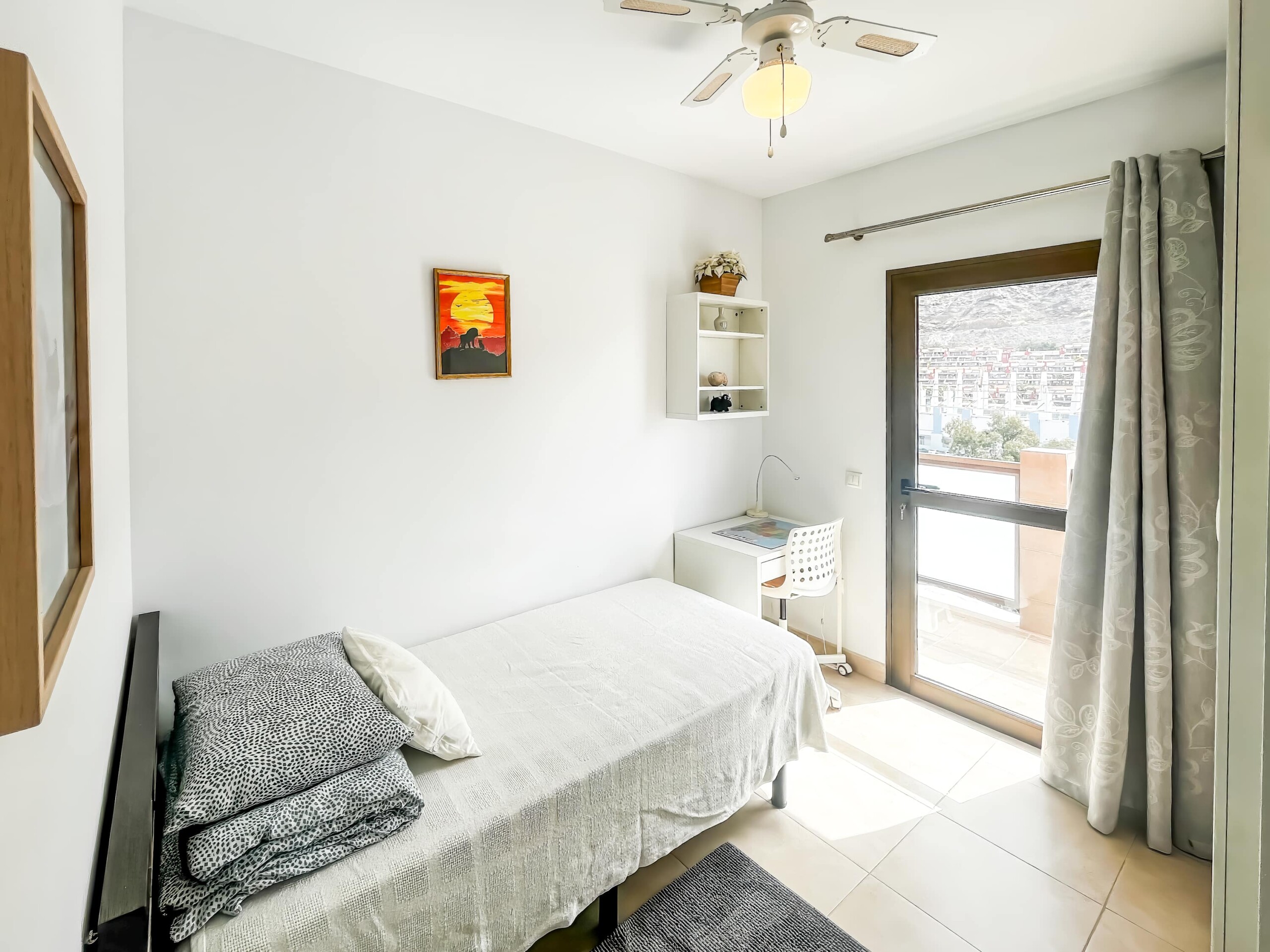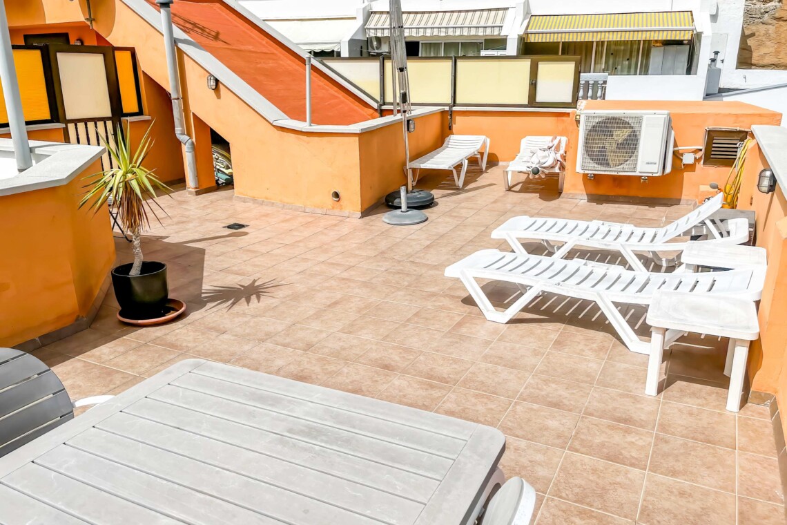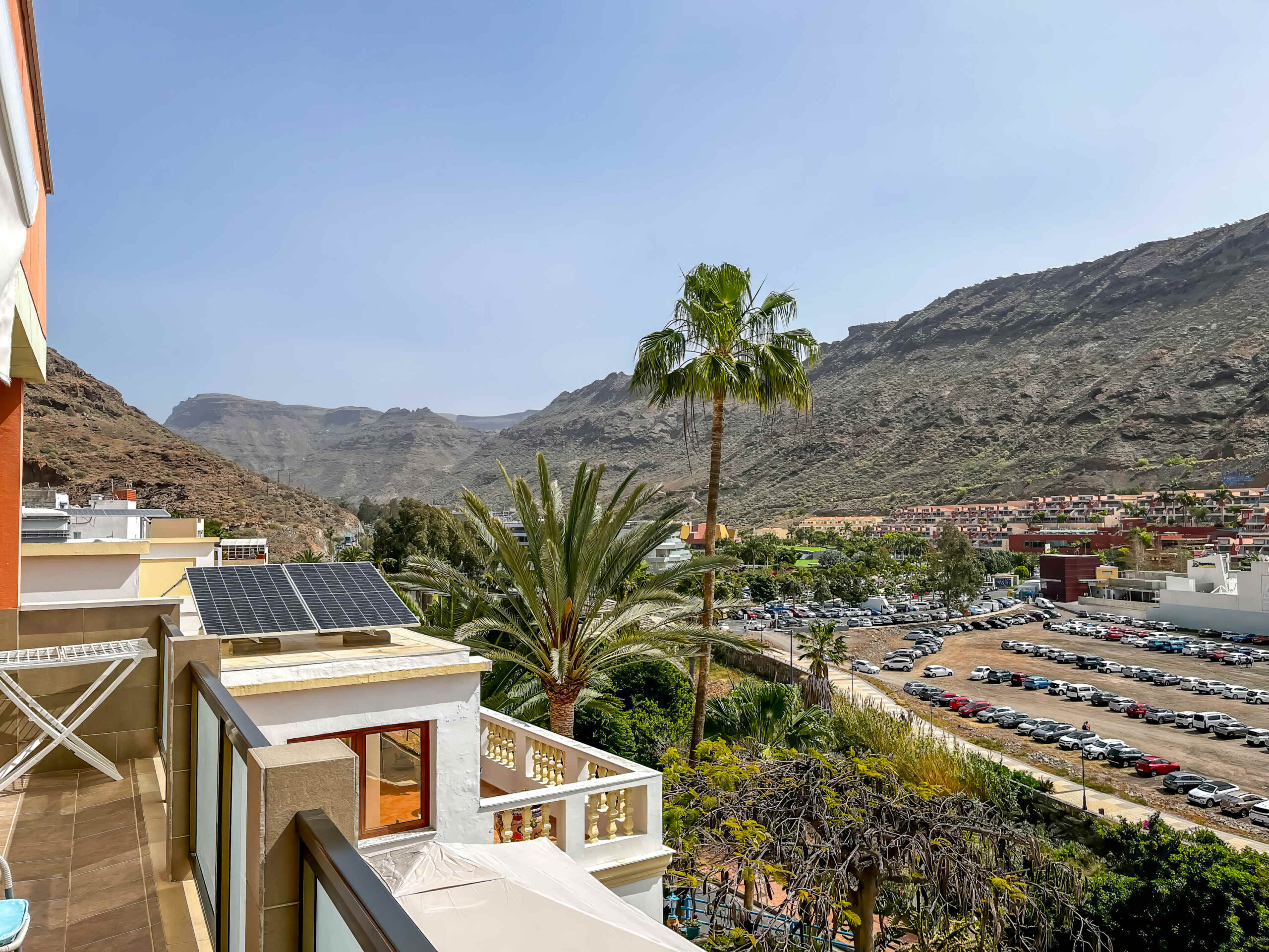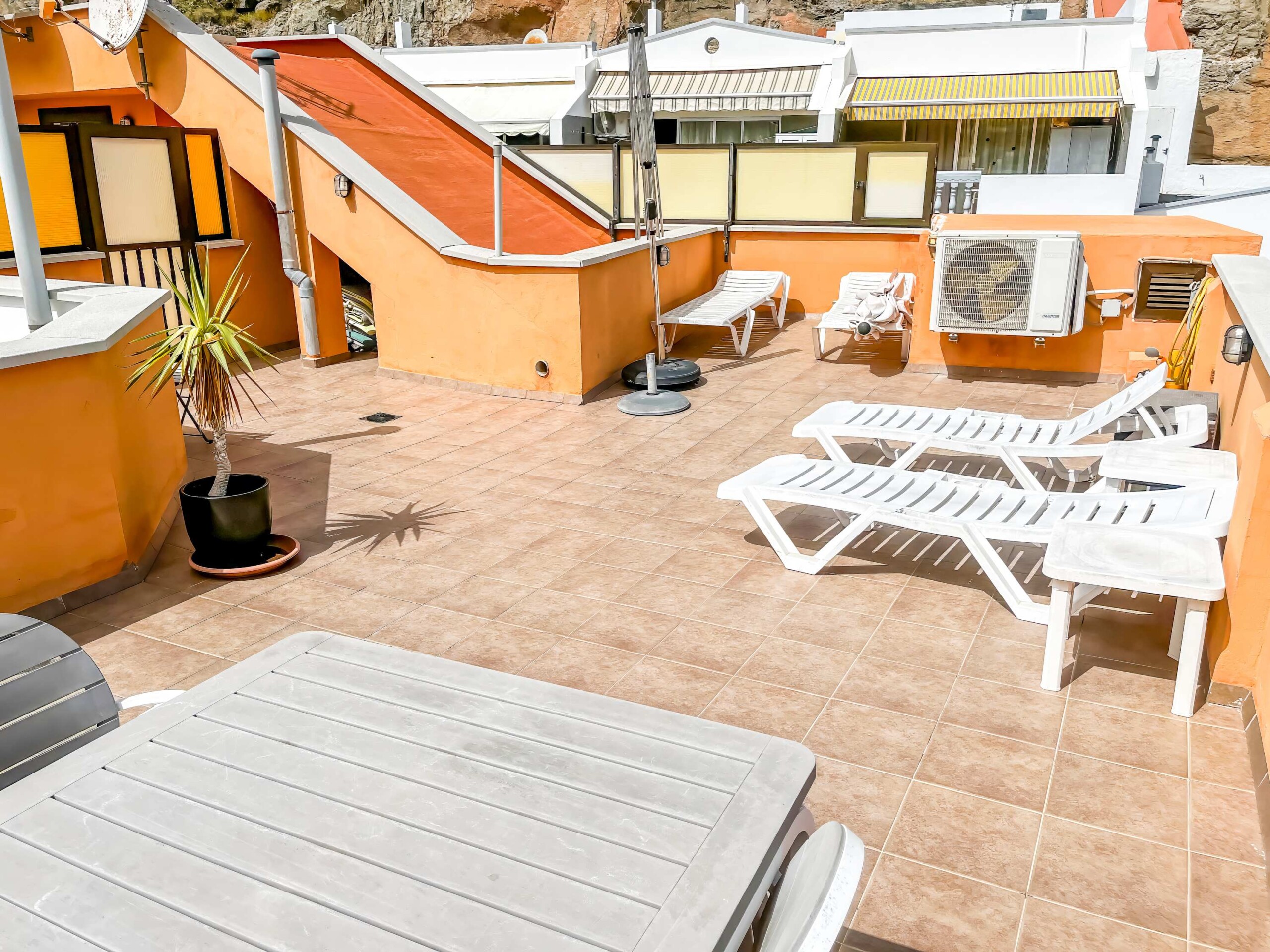The apartment is situated in beautiful Playa de Mogan known as little Venice. The beach, harbour and restaurants are just a 5/10 minute walk and a big supermarket just around the corner. The apartment has a 42m² private roof terrace with sea and mountain view with sun loungers. The apartment (62m²) itself has excess to the balcony from the living room and both bedrooms. The washing machine is in the house. The kitchen is well equipped. Private Parking spot.Wifi and air conditioning is included.