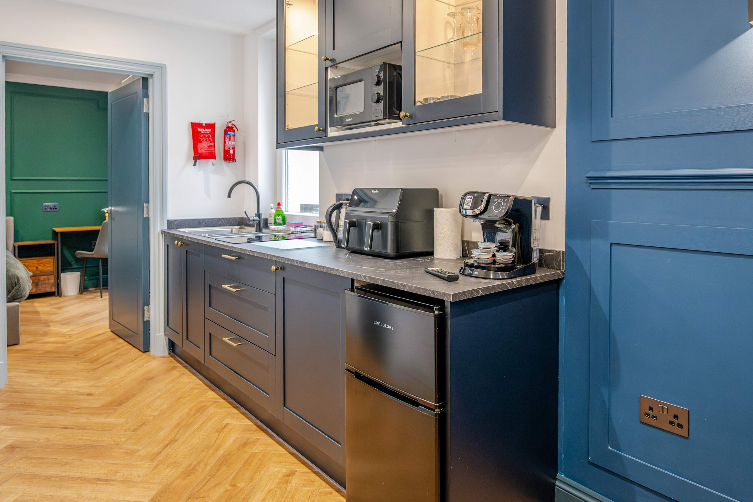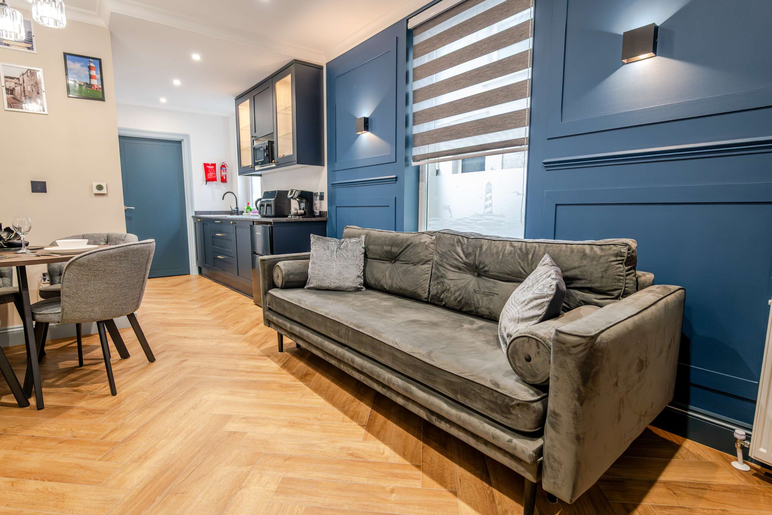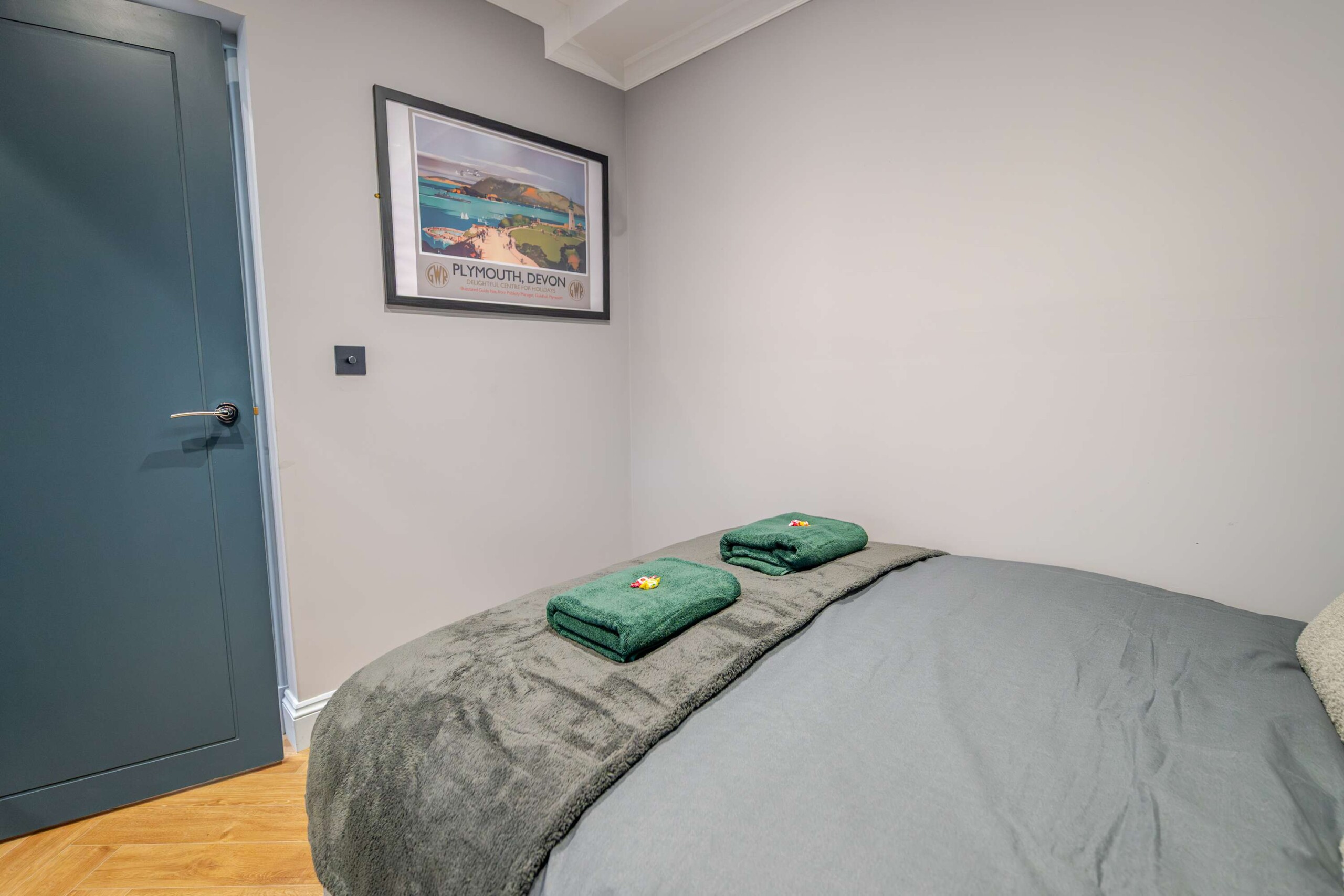 The entrance to the building is on Devonport Road. next to Stoke Barbers. When you enter through the front door, you will pass through a short corridor to find the entrance to the apartment. A thoughtfully designed downstairs, one bedroom apartment, perfect for a relaxing getaway for up to three people. The apartment features a single-level layout, with an open plan living area and kitchen. There is a small courtyard at the rear where you can enjoy the southern sunshine.