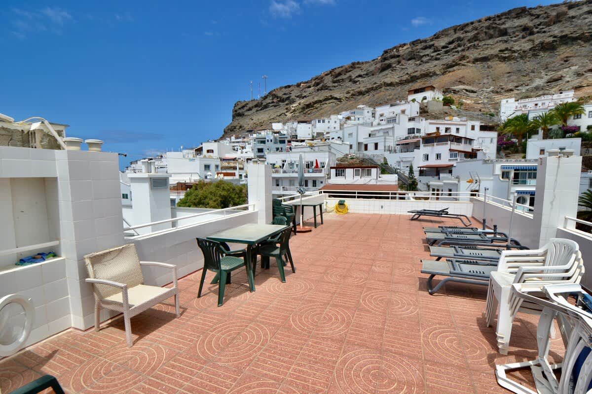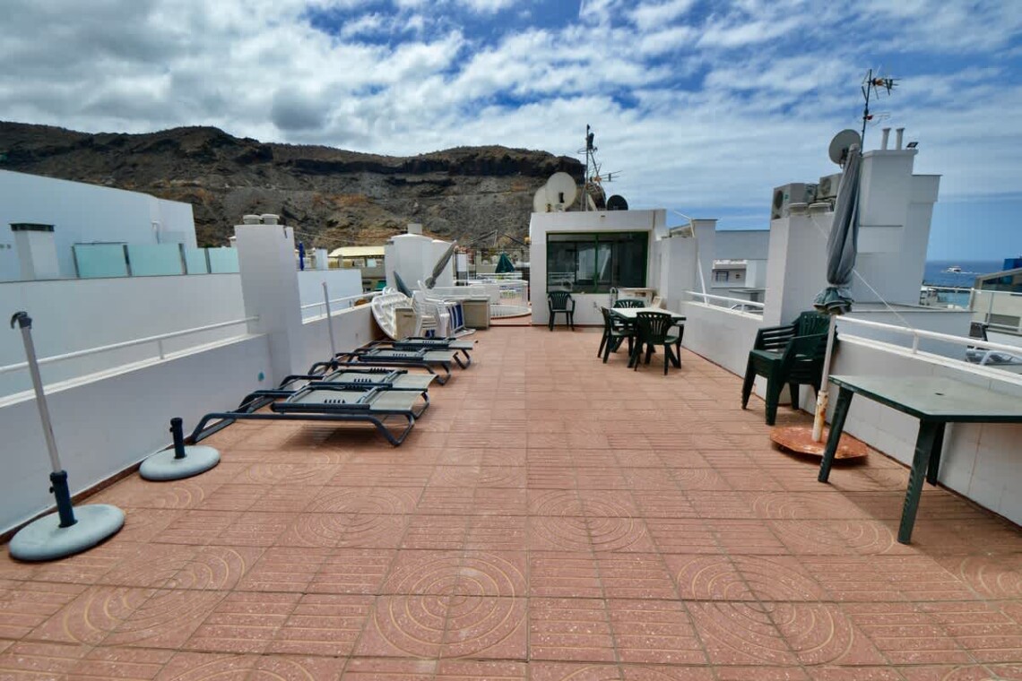 Enjoy wireless internet, a smart TV, and all essential comforts. Step out onto the private terrace overlooking the Puerto de Mogán—perfect for morning coffee or evening drinks. Guests also have access to a shared rooftop terrace with plenty of seating and sun loungers, ideal for soaking up the sun and views.