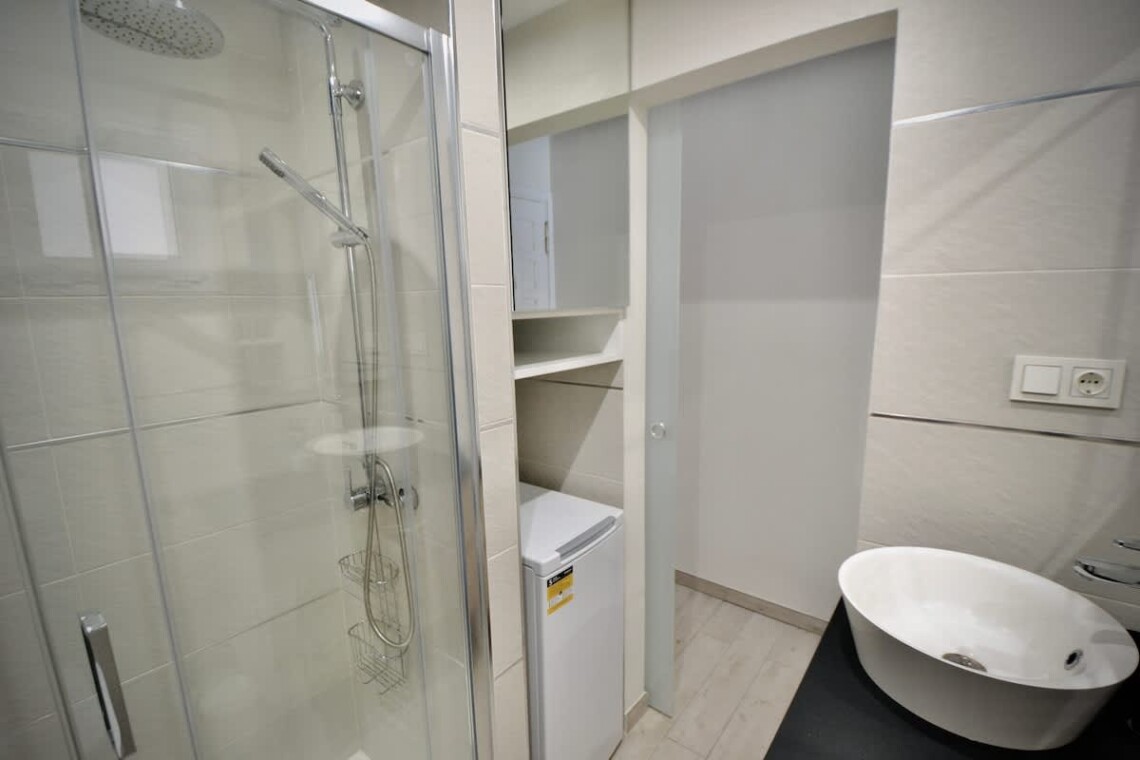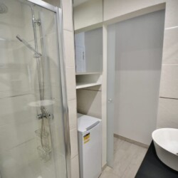 The brand-new, fully equipped kitchen includes a hob, coffee machine, freezer, and everything needed for a relaxed self-catering stay. The sleek shower room is modern and spotlessly clean, with towels, hairdryer, and a washing machine provided.