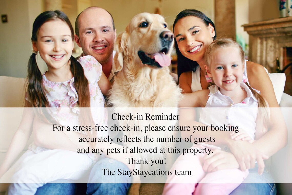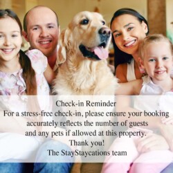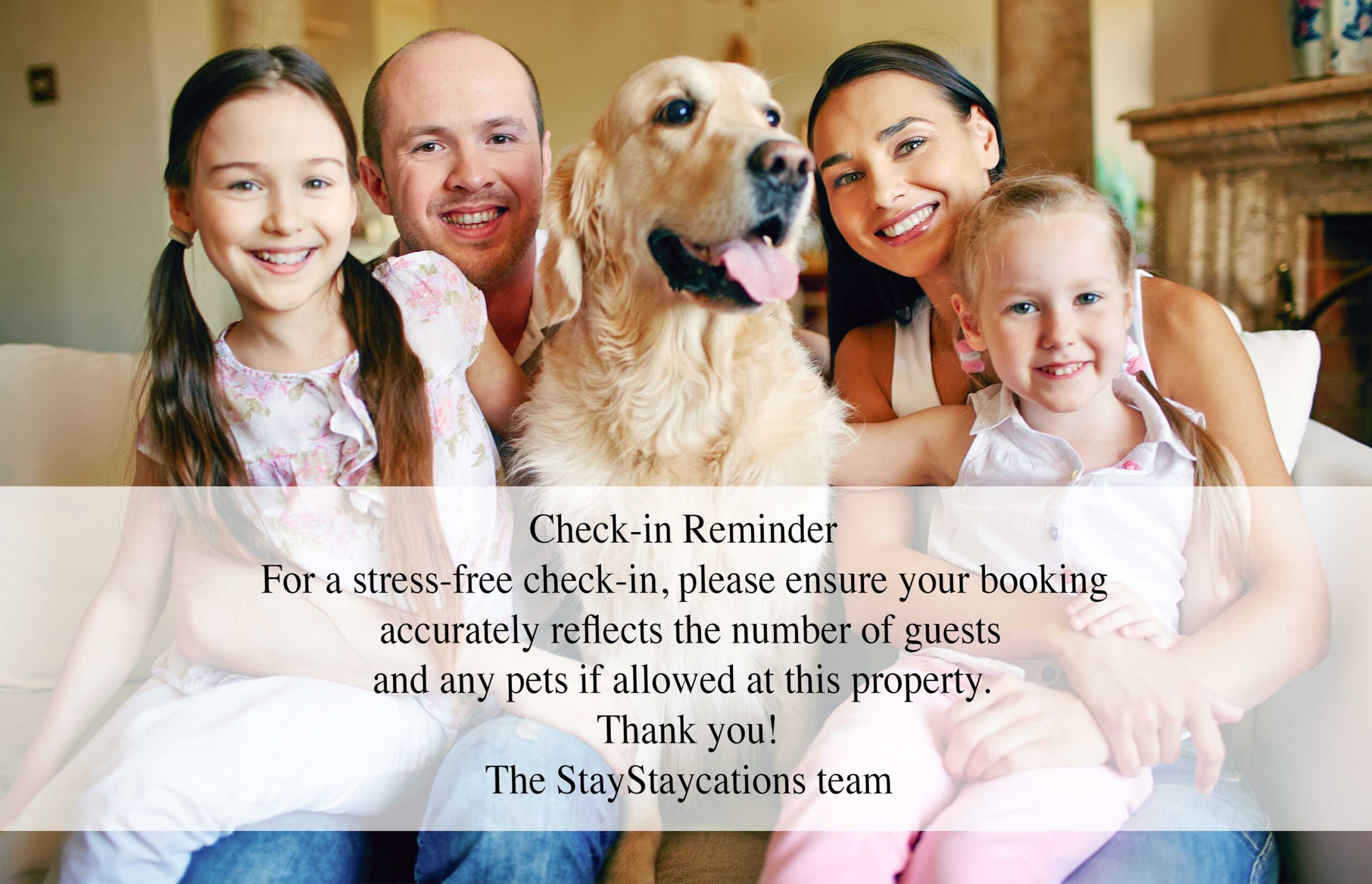 Be sure to confirm the correct number of guests and pets so that we can enjoy a stress free check in.