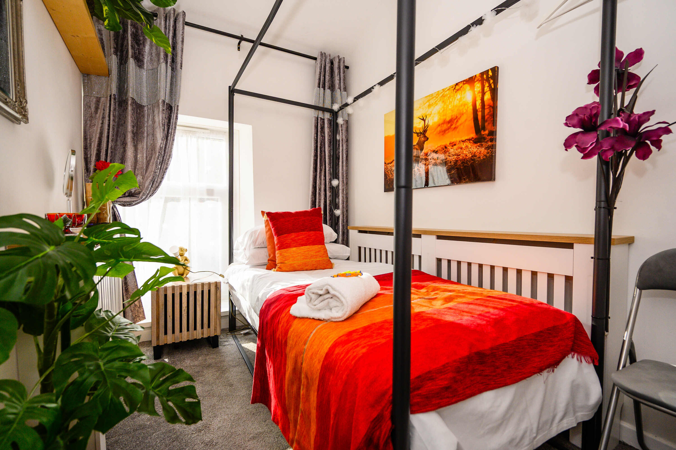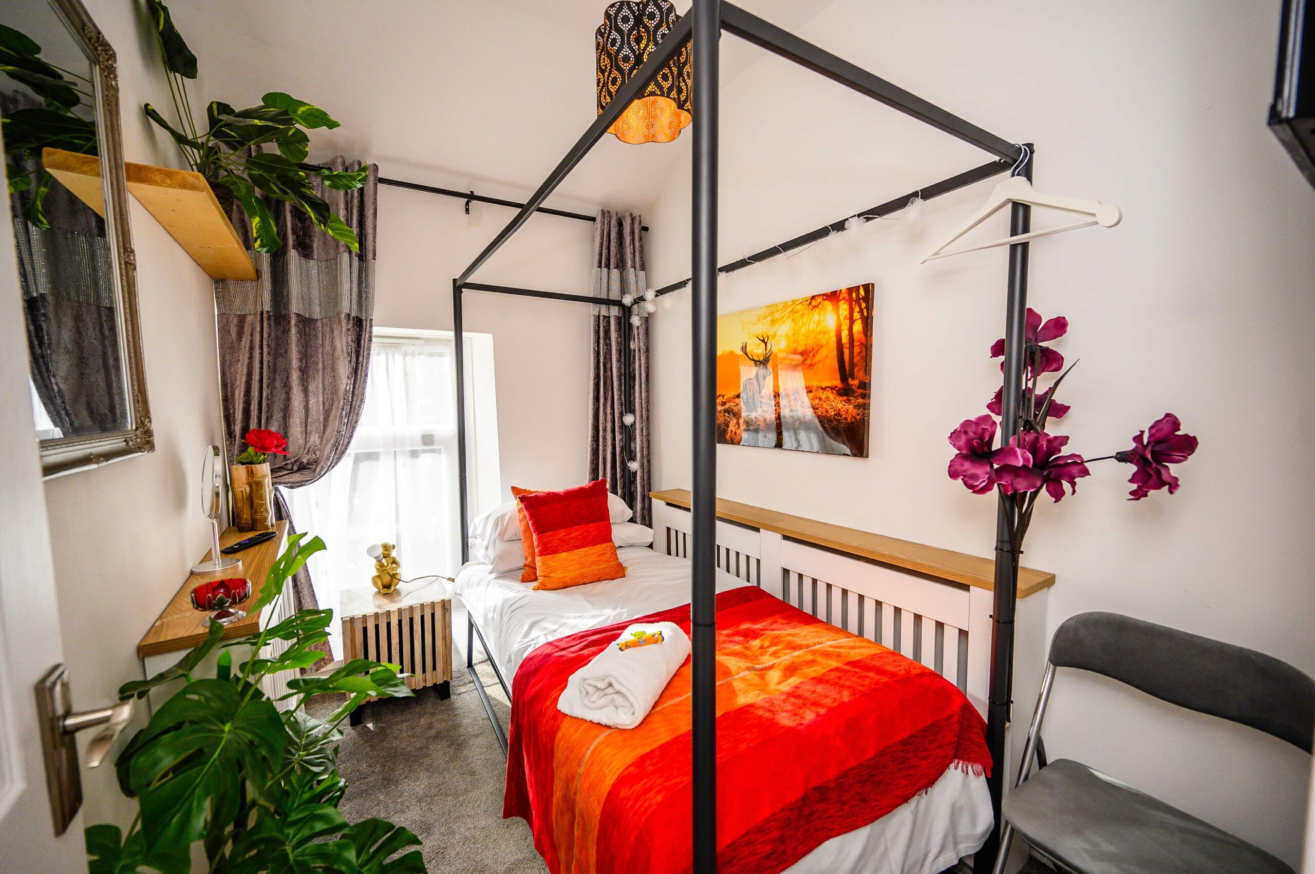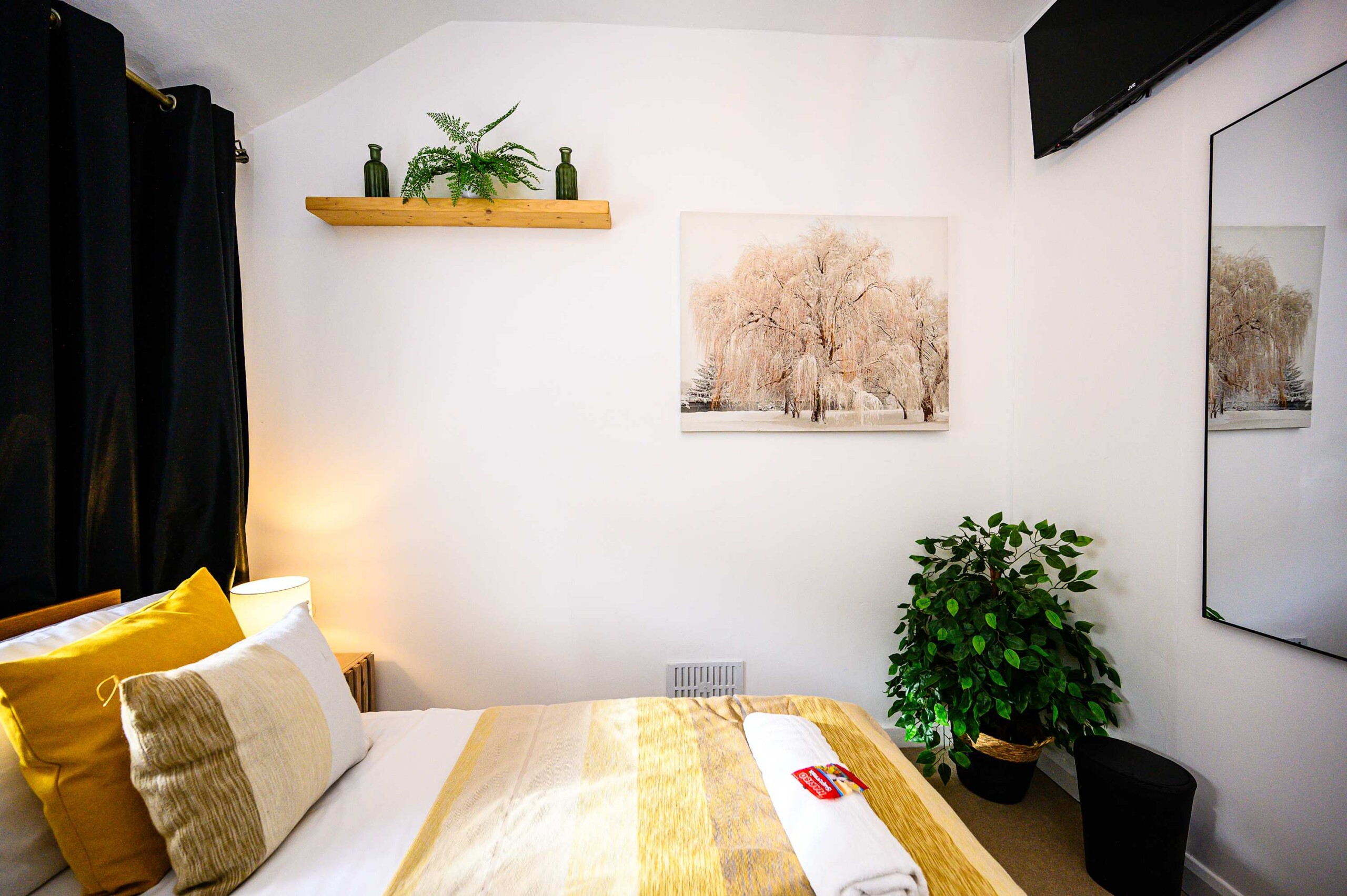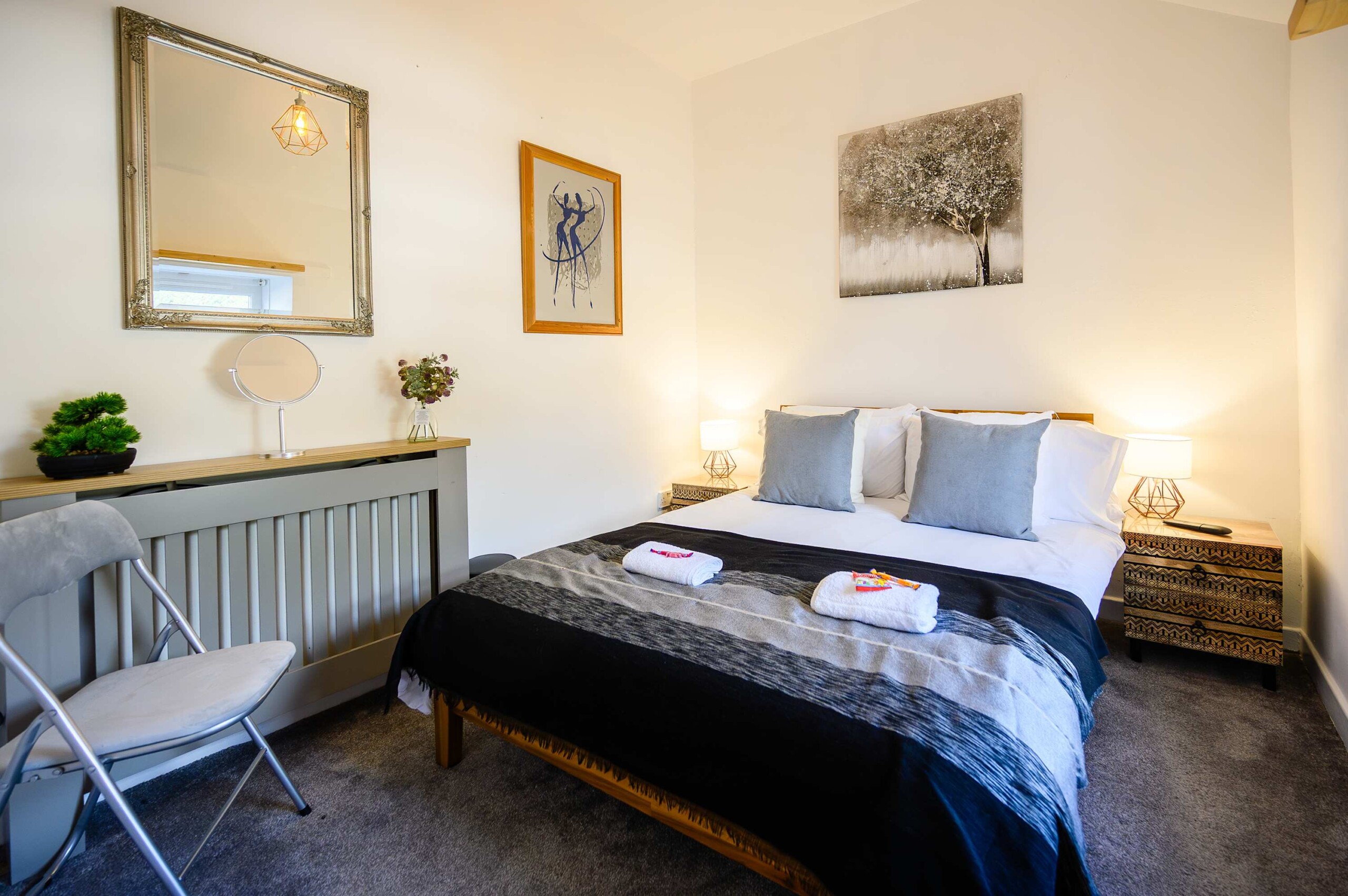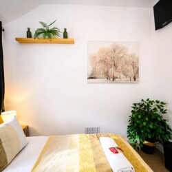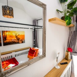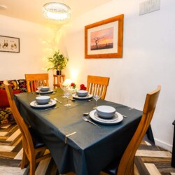 Tree Tops holiday home features three bedrooms, each thoughtfully designed to ensure a restful night’s sleep. Bedroom 1 offers a comfortable double bed. Bedroom 2 also boasts a double bed, perfect for couples or guests. Bedroom 3 is furnished with a single bed. The shower room provides essential amenities for your convenience.